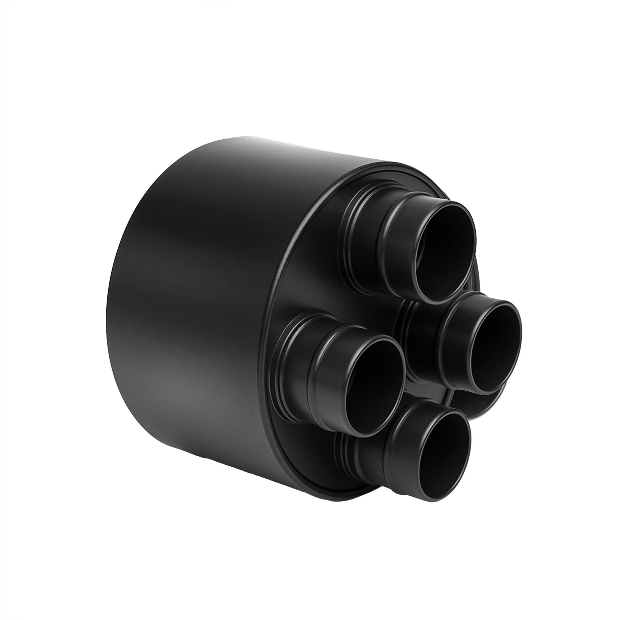 100 mm, comme par exemple les sécheurs à condensation et les sécheurs par adsorption Corroventa. Le distributeur d'air en aluminium thermolaqué est muni d'un raccord à lèvre en caoutchouc et s'enfile sur un tuyau de 100 mm. Il répartit l'air sur quatre raccords de 38 mm. Le système de raccord rapide Easy & Quick ne nécessite pas de colliers de serrage et est compatible avec de nombreux autres produits Roters. Un tuyau spiralé de 38 mm peut toutefois être raccordé sans raccord. Il convient d'éviter de boucher les raccords de tuyau de 38 mm avec des capuchons de protection en PVC, car cela peut entraîner un refoulement et donc déclencher la protection contre la surchauffe.